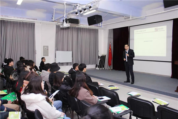 乾港集團(tuán)美博士環(huán)保總經(jīng)理常凱??偅瑸樵谧膸熒鷤兘庾x了大綠色環(huán)保家居、室內(nèi)污染物治理技術(shù)、方式方法及產(chǎn)品介紹等相關(guān)空凈治理知識;秦皇島新型材料科技有限公司總經(jīng)理李勇劍李總則為在座師生帶來了綠色材料研發(fā)及生產(chǎn)使用工藝等內(nèi)墻環(huán)保壁材方面的知識。