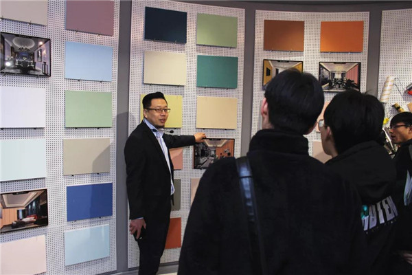 參觀完總部后,在解說員的帶領(lǐng)下,河北環(huán)境工程學(xué)院一行人來到了我公司品牌體驗(yàn)展示中心。對于我司相關(guān)環(huán)保產(chǎn)品大家都還比較陌生,常凱??偂⒗钣聞羁偡謩e對室內(nèi)污染物治理展廳、企業(yè)綠色裝飾材料展廳進(jìn)行了細(xì)致介紹,讓大家對凈化原理及環(huán)保材料等有了一個(gè)全新的認(rèn)識!